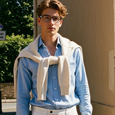 Unisex Two Tone Light Blue and Red Acetate Square Frame Big Frame with Metal Temple Lamination Fashionable and Solid Pattern